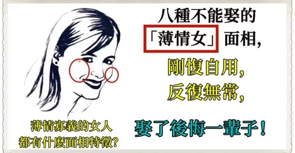 八種不能娶的「薄情女」面相,剛愎自用,反復無常,娶了後悔一輩子