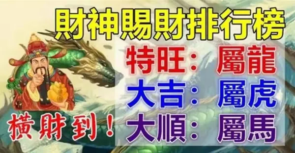 財神賜財排行榜,特旺、大吉、大順的生肖,橫財到