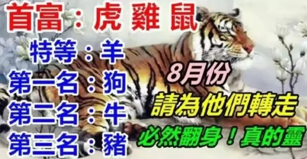 (虎,雞,鼠)8月份請為他們轉走,必然翻身!