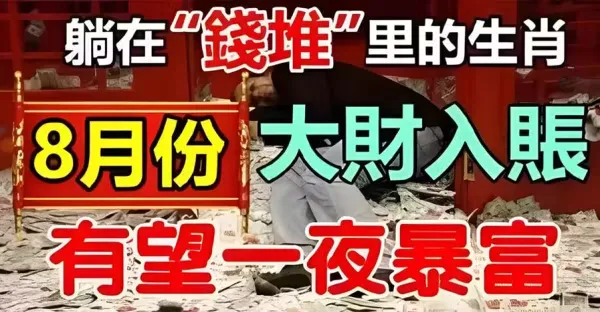 躺在錢堆里的生肖,8月份大財入賬,真是讓人羨慕的很!