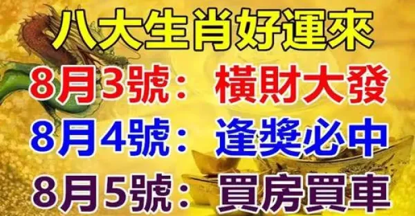 8月3.4.5日無論男女都能行大運,中大獎的生肖