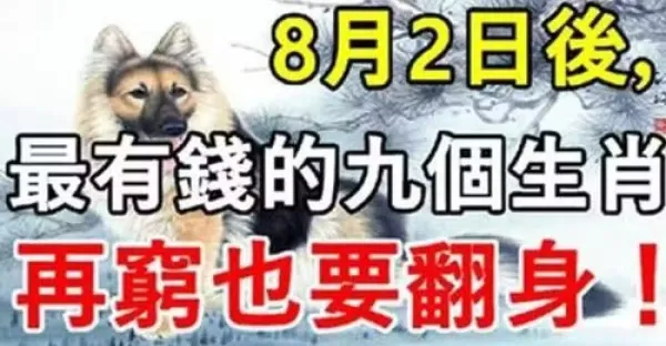 8月2日後最有錢的九個生肖,再窮也要翻身