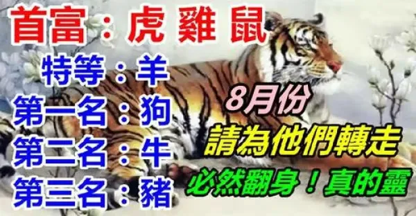 (虎,雞,鼠)8月份請為他們轉走,必然翻身