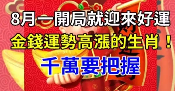 8月一開局就迎來好運,金錢運勢高漲的生肖!千萬要把握!