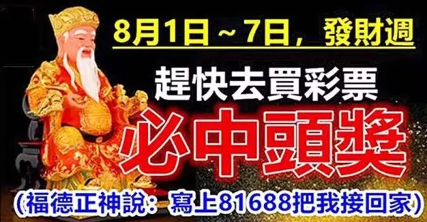 8月1號~7號發財週,趕快去買彩票,必中頭獎的生肖