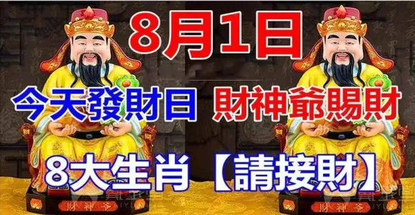 8月1日發財日,財神爺賜財,八大生肖請接財