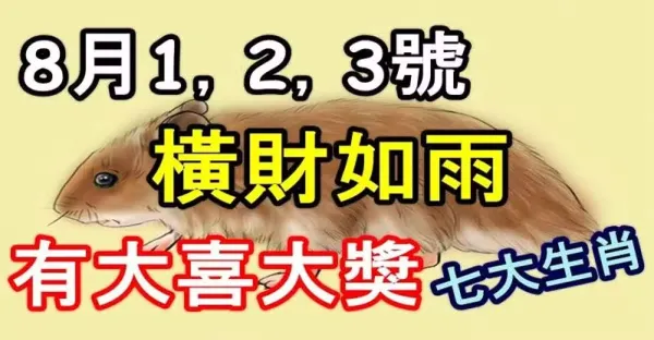 8月1,2,3號橫財如雨能脫貧,有大喜大獎的七大生肖