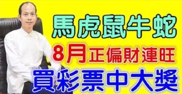 8月正偏財連旺的生肖,買彩票中大獎,年底行大運