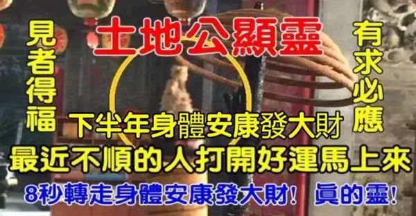 8月第一天,土地公顯靈!打開好運馬上來,見者得福!身體安康發大財!真的靈!