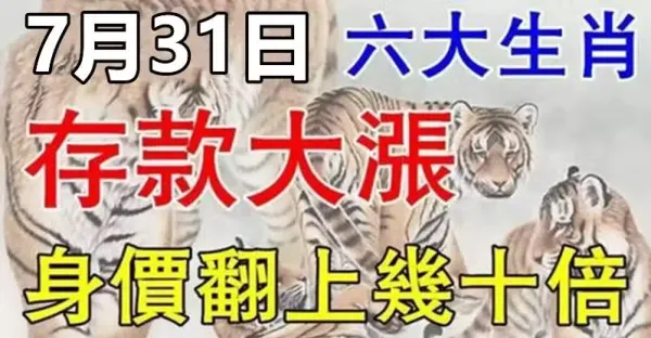 7月最後一天(31號)收入大筆財運,存款翻倍的生肖!