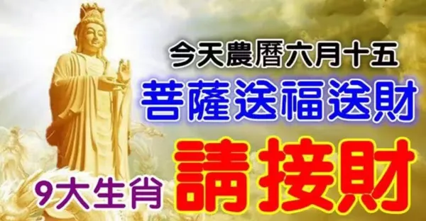 今天農曆六月十五,菩薩送福送財,九大生肖請接財