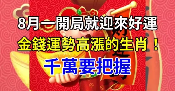 8月一開局就迎來好運,金錢運勢高漲的生肖!千萬要把握!