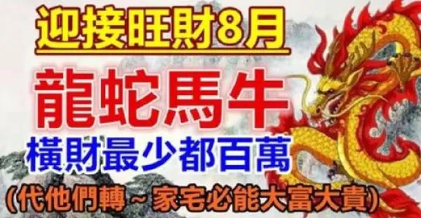 迎接旺財8月的生肖,橫財最少都百萬