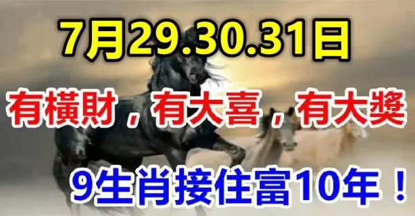 7月29.30.31日有橫財,有大喜,有大獎,九大生肖接住富十年