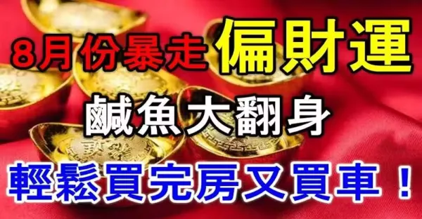 8月份暴走偏財運,鹹魚大翻身,輕鬆買完房又買車的生肖