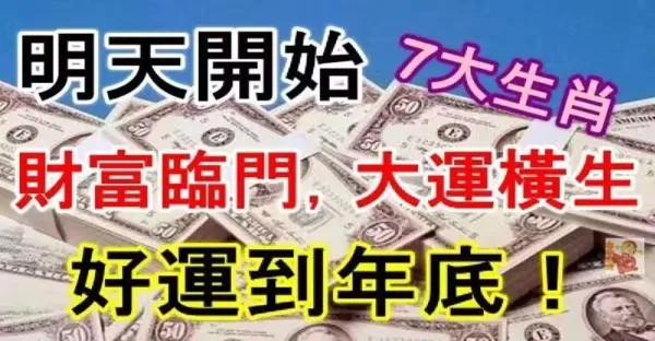 明天開始財富臨門,大運橫生,好運到年底的七大生肖快來接!