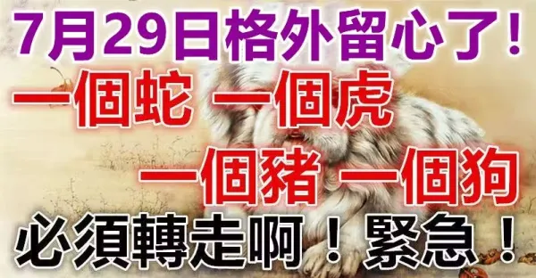 7月29日要格外留心了,一個蛇、一個虎、一個豬、一個狗必須轉走啊