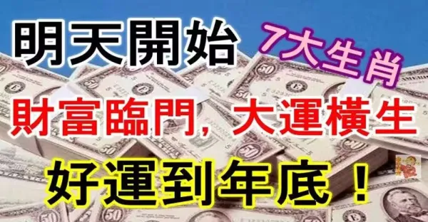 明天開始財富臨門,大運橫生,好運到年底的七大生肖快來接