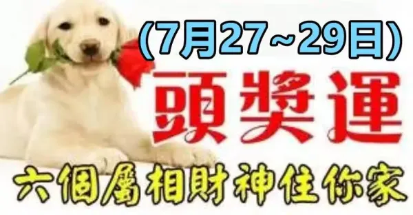 7月27號過後有一筆橫財降臨,中一注頭獎的生肖