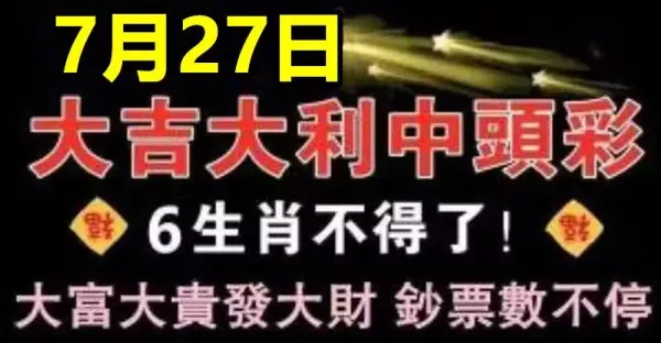 7月27日開始,六大生肖大吉大利中頭彩