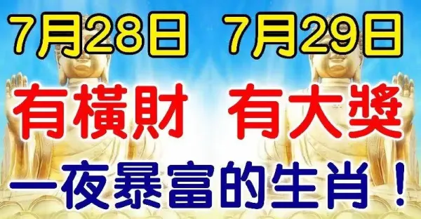 7月28日有橫財,7月29日有大獎,財運爆棚的生肖