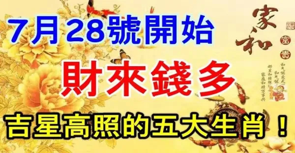 7月28號開始財來錢多,吉星高照的五大生肖