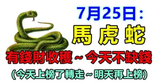 7月25日有錢財收穫,今天不缺錢的生肖