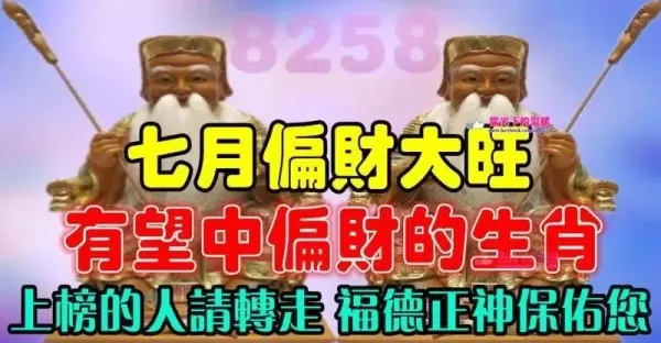 7月偏財大旺, 有望會中偏財的生肖, 福德正神保佑你