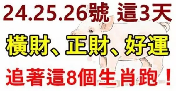 7月24.25.26號這三天橫財、正財、好運追著這八個生肖跑