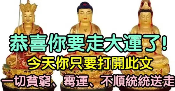 恭喜你要走大運了!今日一起行善布施「頂禮讚嘆三位佛菩薩」為全家消除一切業障
