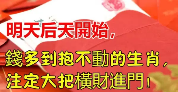明天後天開始,錢多到抱不動的生肖,註定大把橫財進門❗️