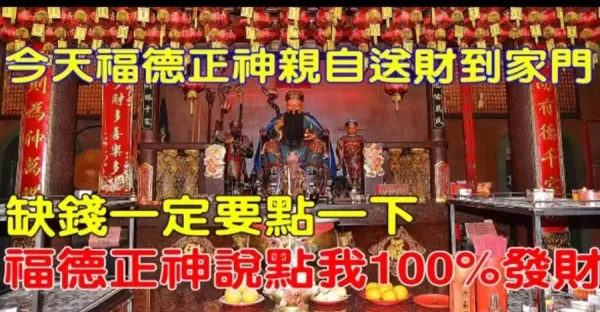 今天福德正神親自送財到家門,最近缺錢的人打開財運馬上來,見者得福100%發財!