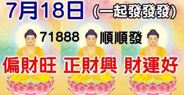 今天7月18順發日,土地公賜財,六大生肖請接財,好運旺旺一整年