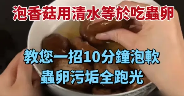 泡香菇用清水等於吃蟲卵!教您一招,10分鐘泡軟,蟲卵污垢全跑光~