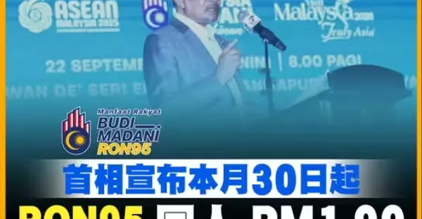 首相宣布本月30日起 RON95 國人 RM1.99 外國人 RM2.60