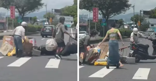 回收阿伯路中摔車!!下秒驚見「演藝圈天王父女」出面幫忙 暖舉被萬人贊翻:「最好的身教~」