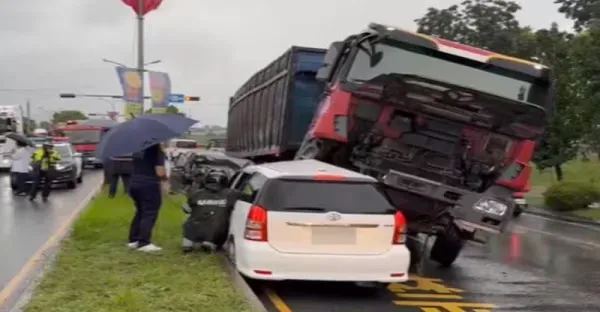 天雨路滑釀慘禍!聯結車逆向衝撞2小客車 4人受傷送醫