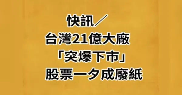 快訊 / 台灣21億大廠「突爆下市」股票一夕成廢紙