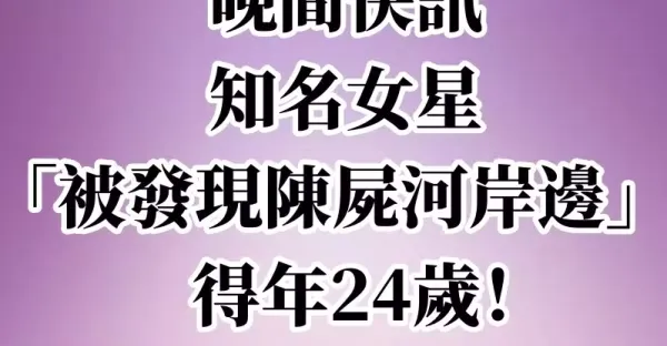 晚間快訊/知名女星「被發現陳屍河岸邊」得年24歲!