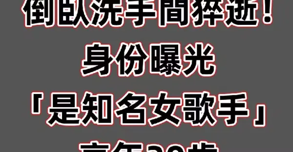 倒臥洗手間猝逝!身份曝光「是知名女歌手」享年30歲