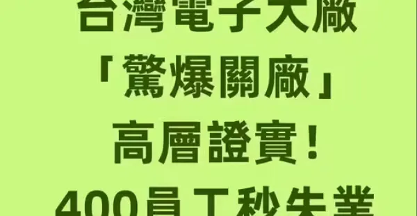 成立43年!台灣電子大廠「驚爆關廠」高層證實!400員工秒失業「股票恐變成壁紙!」