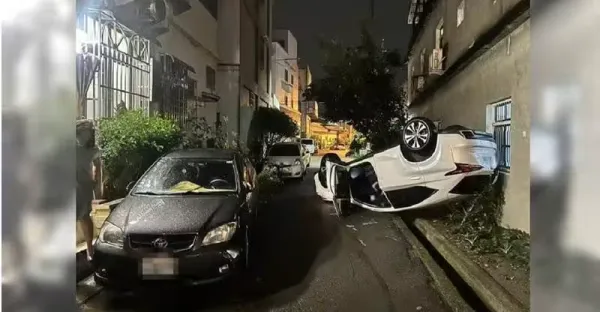 酒醉男開車「飛牆卡屋」大雅驚現翻覆奇景 酒測超標送辦