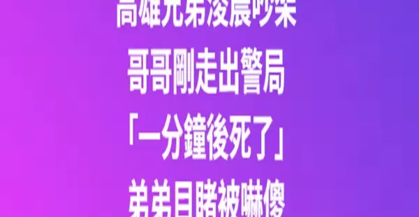 高雄兄弟凌晨吵架!哥哥剛走出警局「一分鐘後死了」弟弟目睹嚇傻!