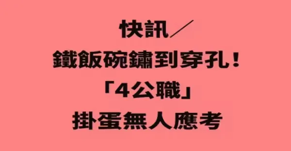 快訊/ 鐵飯碗銹到穿孔!!! 「4公職」掛蛋無人應考
