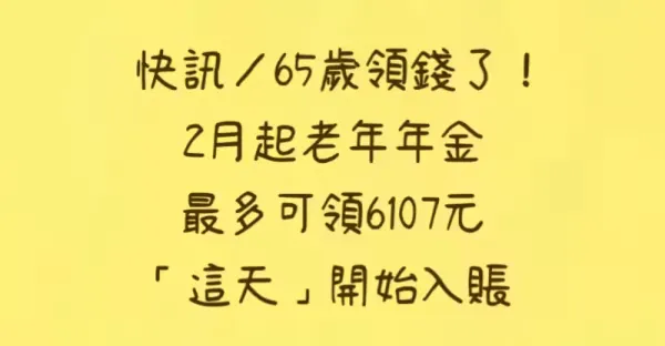 快訊/65歲領錢了!2月起老年年金最多可領6107元,「這天」開始入帳!