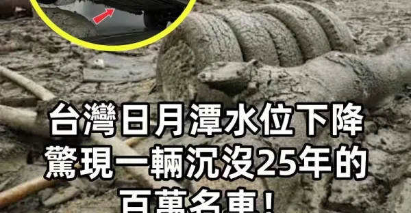 台灣日月潭水位下降,驚現一輛沉沒25年的百萬名車!拖吊上岸撬開後車廂, 現場遊客全都嚇傻了!