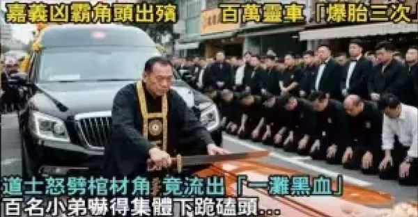 嘉義凶霸角頭出殯!百萬靈車「爆胎三次」道士怒劈棺材角,竟流出「一灘黑血」 百名小弟嚇得集體下跪磕頭!
