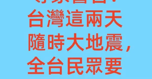 「專家警告,台灣這兩天隨時大地震,全台民眾要準備逃難!」