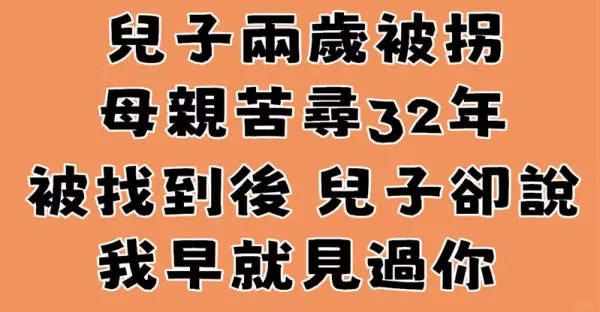 兒子「兩歲被拐」母親苦尋32年,被找到後兒子卻說:我早就見過你