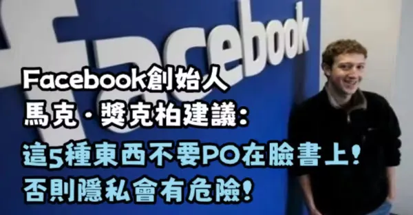 Facebook創始人馬克·獎克柏建議:這5種東西不要PO在臉書上,否則隱私會有危險....